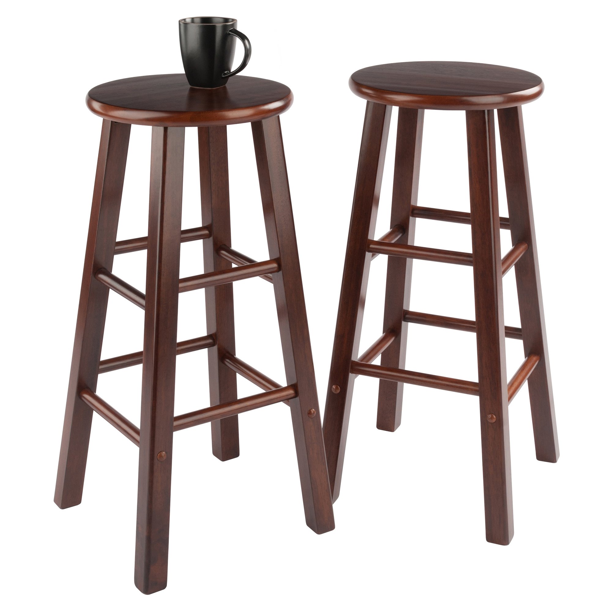 Spruce up your kitchen; breakfast nook; or den with this Winsome Wood Element Bar Stool Set. Finished in a polished walnut finish; these stools feature a simplicity of design blending seamlessly with any decor from modern to traditional. Crafted from study solid wood these bar stools are designed to help you coordinate with a wide variety of furnishings. The square legs and round seat have a sturdy built offering a supportive foundation and hold a static weight of 220lbs. Featuring 8 crossbars; high and low on all four sides; for stability and strength while also serving as convenient footrests; making this stool not only functional but also comfortable. Ideal for extra seating; accommodating guests at gatherings and ideal for everyday use. These 13.58'W x 13.58'D can easily be tucked away when not in use. Like most Winsome stools; the Element collection is available in multiple finishes and like most Winsome stools are available in both bar and counter height. Conveniently packed and shipped in one box; that includes the hardware necessary for assembling. Replacement part request can be submitted directly to the manufacturer within 60 days from date of purchase.