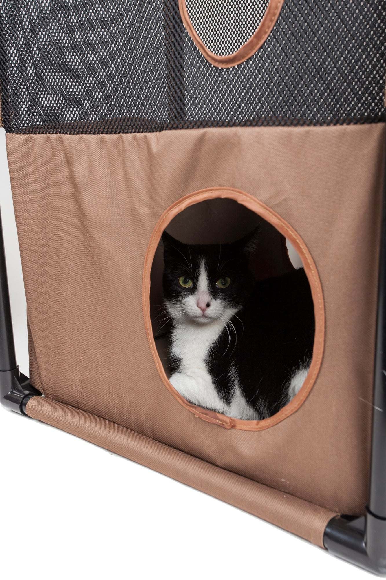 1.The ultimate real-life cat puzzle and house that features multiple tunnels and holes. Great for multiple cats and great for brain engagement